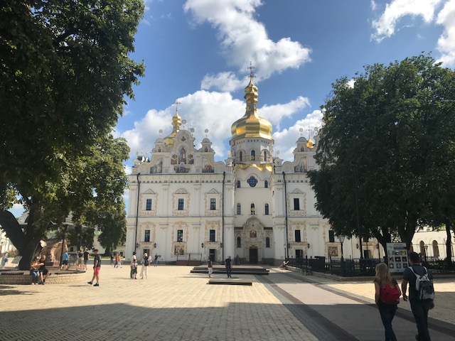 Poté už stačí dojít k jednomu z vchodů do Kyjevskopečerské Lávry. Lístky se kupují ve stánku před vchodem (vypadá jak naše trafiky). V areálu najdete krásnou architekturu a vyběhnout si můžete na zvonici, odkud je pěkný pohled z výšky.