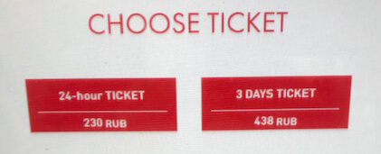Kdo přijel nočním vlakem z Petrohradu jako já, moc toho asi nenaspal. Kdo právě přiletěl z Prahy, má energetickou výhodu. V obou případech je potřeba dostat se do metra. Tam najdete automaty na kartičky s jízdným. Vybrat si můžete z jízdného na 1 nebo na 3 dny. Za třídenní kartičku zaplatíte 438 rublů, za jednodenní 230. Na rozdíl od petrohradského metra, kde si musíte koupit plastovou kartu a tu nabít, tady dostanete jednoduše papírovou na vybraný počet dní.