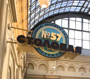 Máte už hlad? Pak musím doporučit návštěvu obchodního domu před chrámem. V posledním patře naleznete pobočku jídelen Stalovaja (napsané to vidíte na obrázku), kde si na tác naberete hromadu úžasných jídel ruské kuchyně a zaplatíte za ni velmi příjemnou cenu. Takže se nebojte ochutnat co nejvíce, vše chutná božsky (pokud si tedy nevyberete něco s litrem majonézy) :)